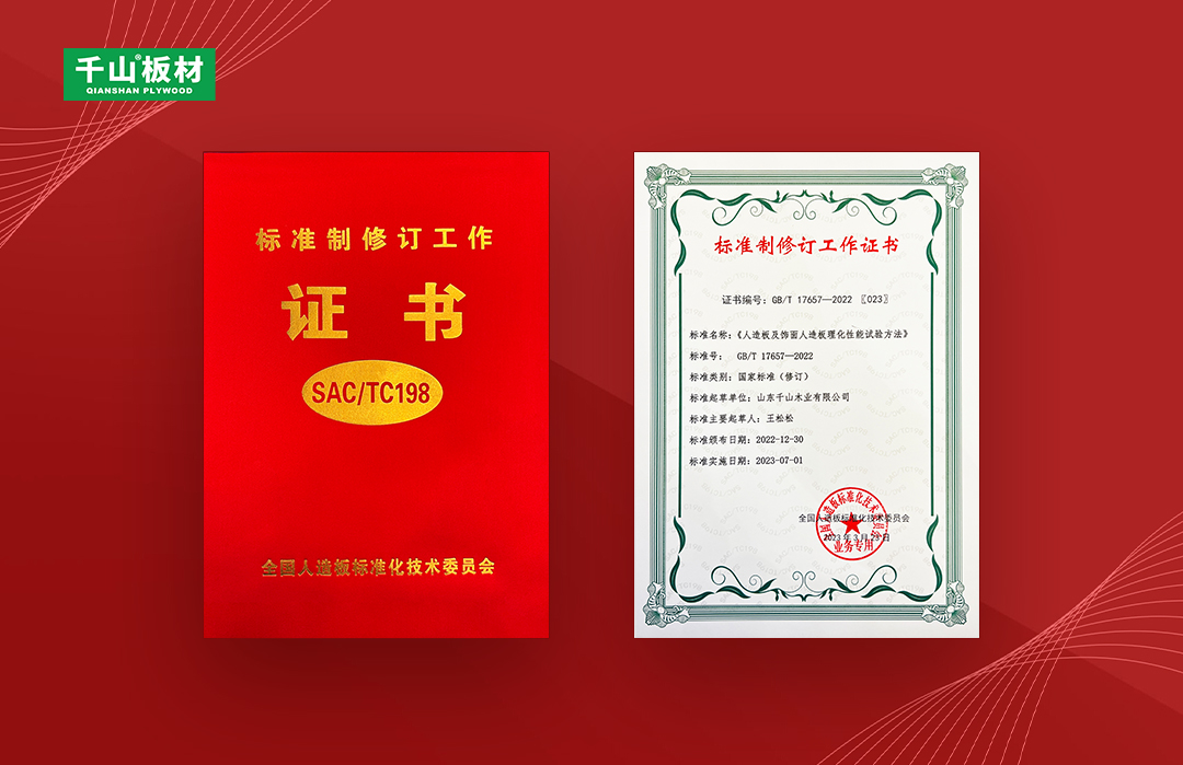 3月22日-24日,由全國人造板標準化技術委員會、中國林業科學研究院木材工業研究所、林業產業標準化國家創新聯盟主辦的《人造板及飾面人造板理化性能試驗方法》等新頒布標準宣貫培訓暨產業發展研討會在浙江南潯召開,千山應邀出席并獲頒國家標準制修訂工作證書。中國林科院木材工業研究所家具與木制品研究室主任、研究員龍玲介紹了