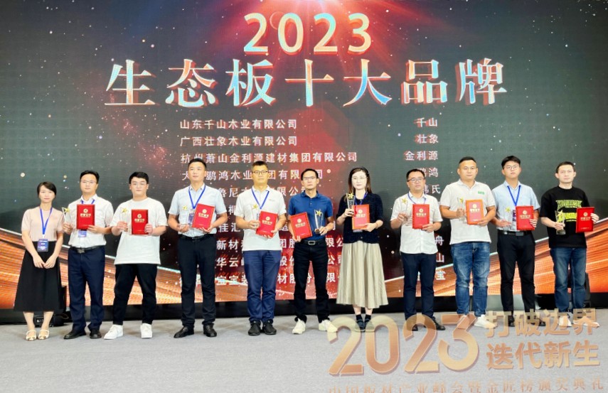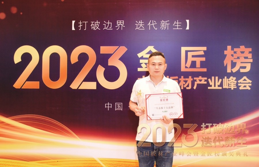 在此次評選中,千山板材實力登榜,憑借優(yōu)異的產(chǎn)品品質(zhì)、強大的品牌實力、良好的服務(wù)口碑,再次斬獲金匠榜2023年度“生態(tài)板十大品牌”榮譽稱號。