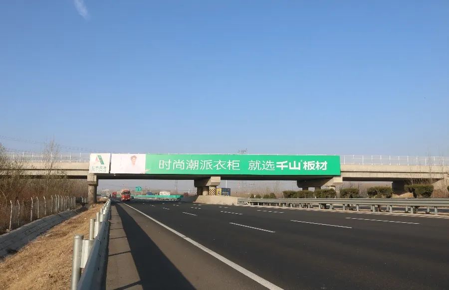 本次高速?gòu)V告形式依舊涵蓋跨線(xiàn)橋、單立柱,以千山2.0品牌色調(diào)綠色為主色調(diào),展示了全新品牌代言人李晨以及全新品牌LOGO。廣告畫(huà)面鮮艷、美觀、簡(jiǎn)潔,進(jìn)一步將“時(shí)尚潮派衣柜 就選千山板材”的品牌主張傳遞給更多的消費(fèi)者。