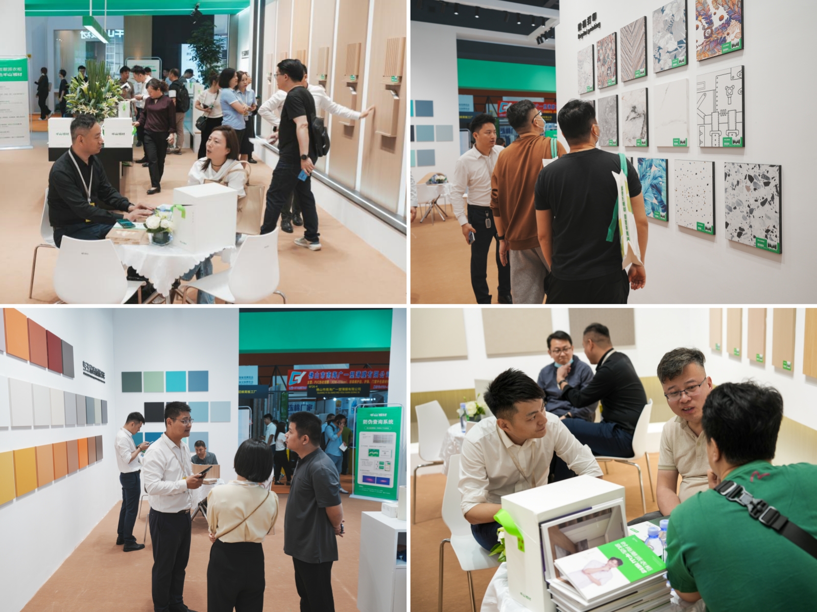 千山板材展位吸引了眾多觀展者前來參觀咨詢,多個亮點燃爆現場,開展首日便人氣“爆棚”,成為“熱門打卡點”。現場的小伙伴們專業、耐心、細致地為大家講解產品特點和產品優勢。