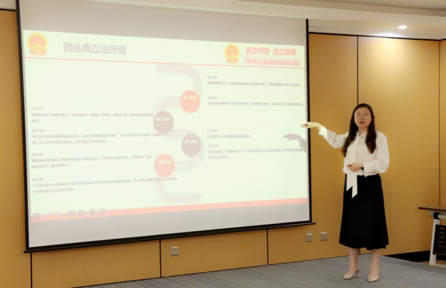 2024年5月是第四個(gè)“民法典宣傳月”,為了加強(qiáng)民法典的學(xué)習(xí)宣傳教育,增強(qiáng)集團(tuán)管理人員的法治意識(shí),5月30日下午,千山商學(xué)院特邀請(qǐng)山東今海瑞律師事務(wù)所王嘯云律師舉辦《民法典》專題講座。