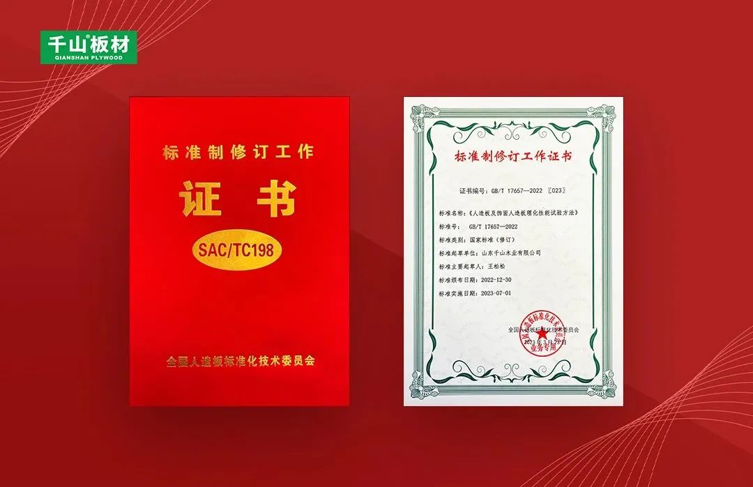 2023年3月,由全國人造板標(biāo)準(zhǔn)化技術(shù)委員會、中國林業(yè)科學(xué)研究院木材工業(yè)研究所、林業(yè)產(chǎn)業(yè)標(biāo)準(zhǔn)化國家創(chuàng)新聯(lián)盟主辦的《人造板及飾面人造板理化性能試驗(yàn)方法》等新頒布標(biāo)準(zhǔn)宣貫培訓(xùn)暨產(chǎn)業(yè)發(fā)展研討會在浙江南潯召開,千山應(yīng)邀出席并獲頒國家標(biāo)準(zhǔn)制修訂工作證書。