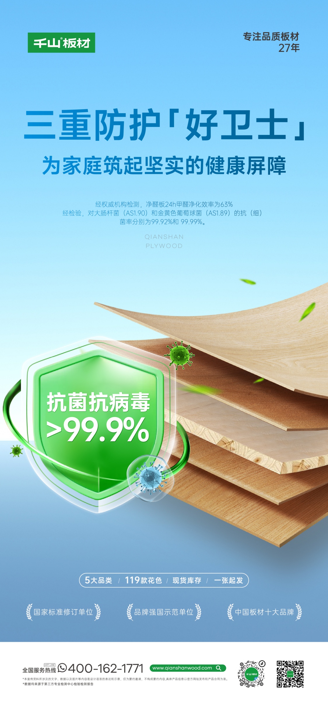 因常年處于日照時間長、水分攝入量少的寒冷地帶,使樺木的密度比較高,并且具有天然抗蟲性能,堅硬的質地在抗壓力、抗腐蝕力方面擁有極強的特性,造就了俄羅斯樺木板更強的耐寒性能。俄羅斯樺木板在抗變形、抗裂性方面同樣具有出色表現,適用于多種室內環境,無論是溫濕度變化頻繁的廚房,還是自然舒適感的臥室。俄羅斯樺木板經過原木養生、板條養生、板芯養生,再經過全烘干工序,恒定含水率使板材性能更穩定,不必擔心濕熱環境變化而導致變形。實木芯采用全指接結構,無縫拼接更加密實,特有HDF平衡層,1000密度耐潮濕,平整度加倍,防止家具龜裂、變形,保持家具的完美形態。俄羅斯樺木板采用無醛膠,環保等級通過國標ENF級和F☆☆☆☆雙檢測,并達HEnf采暖級環保標準,凈醛、抗菌、抗病毒三效合一,環保健康體驗更勝一籌。相比新國標甲醛釋放量,HEnf級板材在30度高溫檢測中甲醛釋放量更少,也更適合使用在熱環境中。飾面采用德國哈特曼油墨印刷,北人高端印刷機、益維高浸漬線、世界領先壓貼設備溫康納強力加持,造就耐磨耐刮、持久抗褪色、防水防潮的超強飾面。潮派木紋系列、經典純色系列、輕奢石紋系列、時尚數碼系列、主流PET系列,百余款潮流花色可選,隨心定制,可滿足不同的家裝風格需求。外在展現精致形態,內在錘煉核心品質。俄羅斯樺木與千山精工飾面工藝相結合,呈現花色與原木的完美同步。千山板材俄羅斯樺木板全國上新,歡迎品鑒!