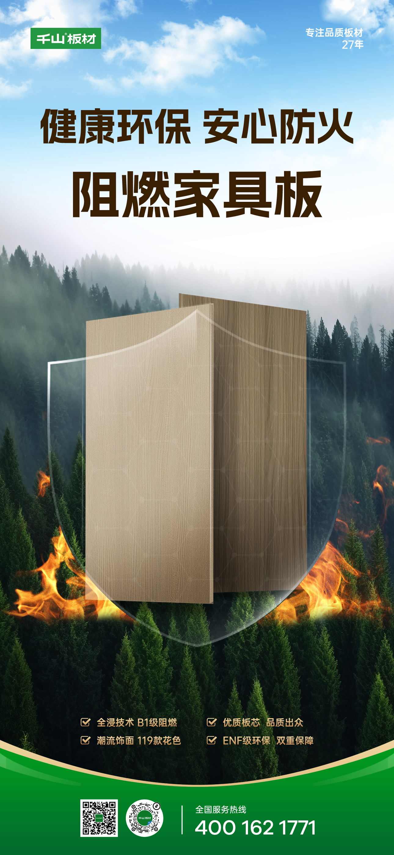 從“符合標(biāo)準(zhǔn)”到“主動(dòng)防護(hù)”,板材安全性能成為大家極為關(guān)注的重要指標(biāo),特別是在家庭環(huán)境中,健康和安全是首要考慮因素。千山阻燃家具板,將科技飾面與安全阻燃技術(shù)相融合,為家居空間“抵抗力”加分。