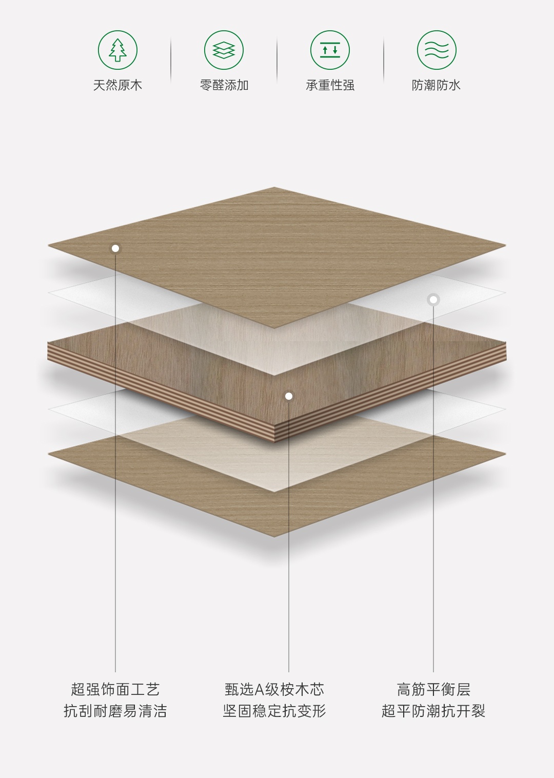 千山阻燃家具板甄選優(yōu)質(zhì)原木,確保成品板材的密度均勻,硬度更高,握釘力更強(qiáng)。內(nèi)芯11層結(jié)構(gòu),加厚單板縱橫交錯(cuò)鋪裝,保證板材的穩(wěn)定性能,膠合強(qiáng)度更高,使板材的抗壓性、承重力更為出色。優(yōu)質(zhì)基材經(jīng)過(guò)全周期養(yǎng)生、篩選、烘干、熱壓、砂光等24道標(biāo)準(zhǔn)工藝,并通過(guò)吸水膨脹率、耐濕、內(nèi)結(jié)合強(qiáng)度等多項(xiàng)專(zhuān)業(yè)檢測(cè),防潮抗變形,品質(zhì)更出眾。