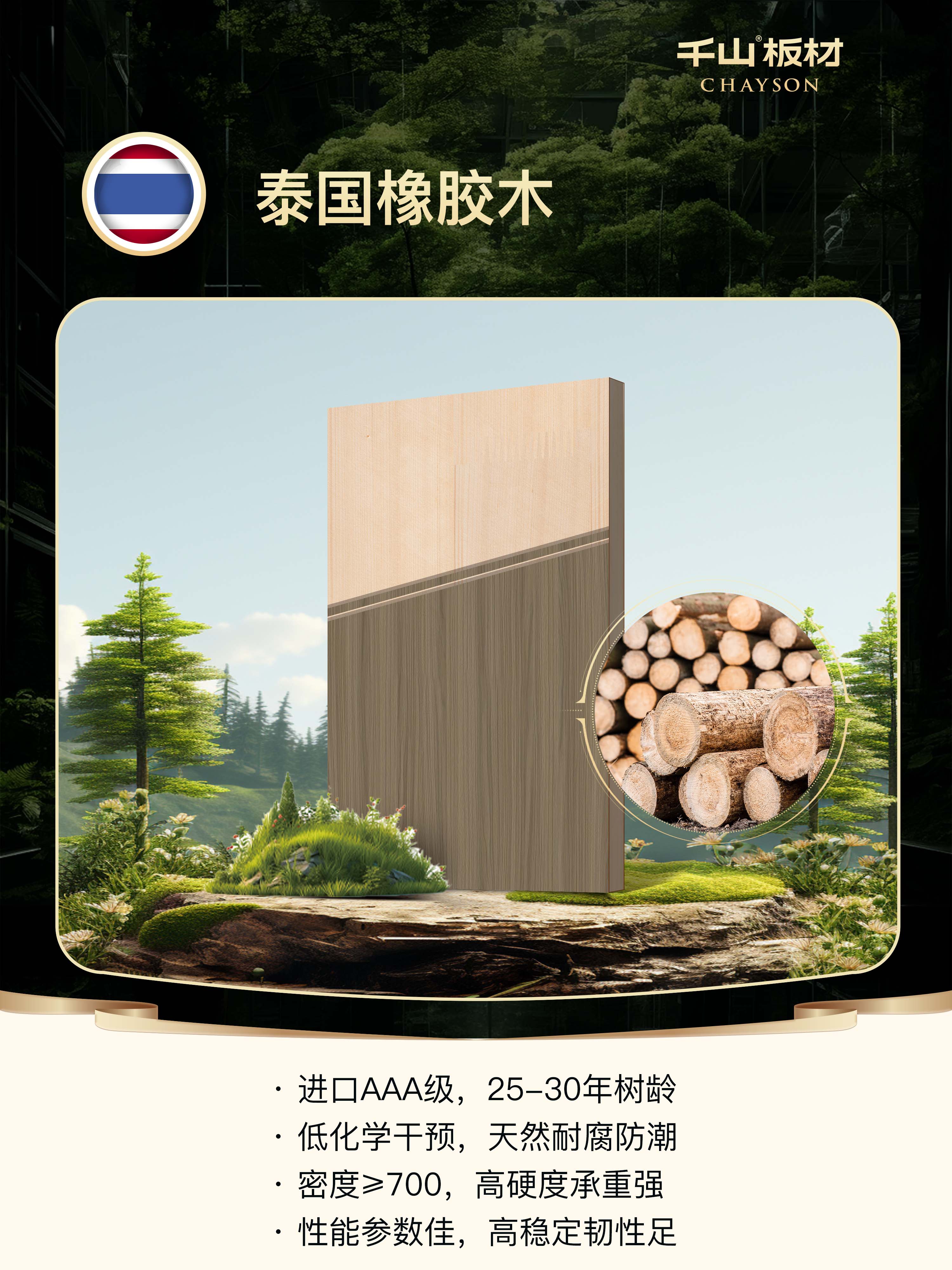 泰國橡膠木樹齡約25-30年,密度≥700,木質較硬,穩定性高。天然耐磨性、耐腐蝕性,防潮性等參數俱佳。