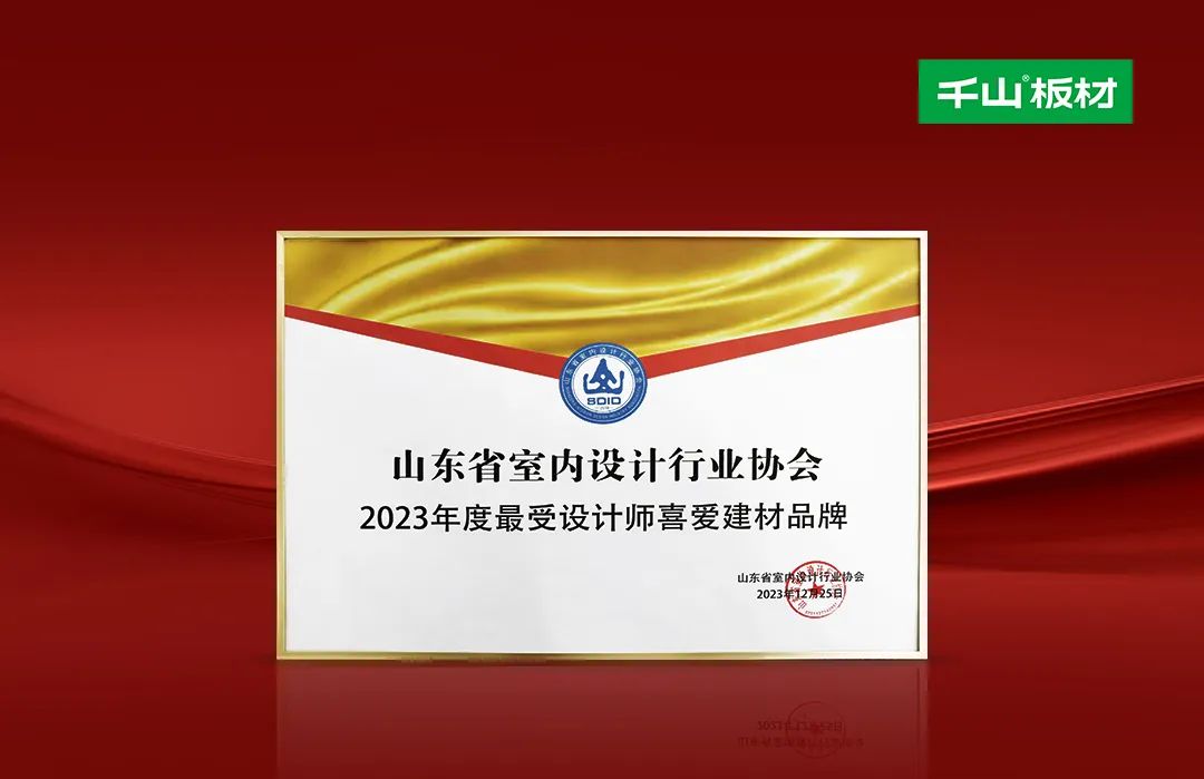 2024年1月27日,「設計圈兒」歲序雅集設計大會暨山東省室內設計行業協會年度慶典活動在山東濟南盛大啟幕。千山板材作為活動特邀嘉賓與業內知名企業一同參加了本次盛會,并榮膺“2023年度最受設計師喜愛建材品牌”。千山板材大區經理王殿忠、千山板材濟南運營中心負責人牛忠良一同出席本次盛會,王經理代表公司上臺領獎。活動