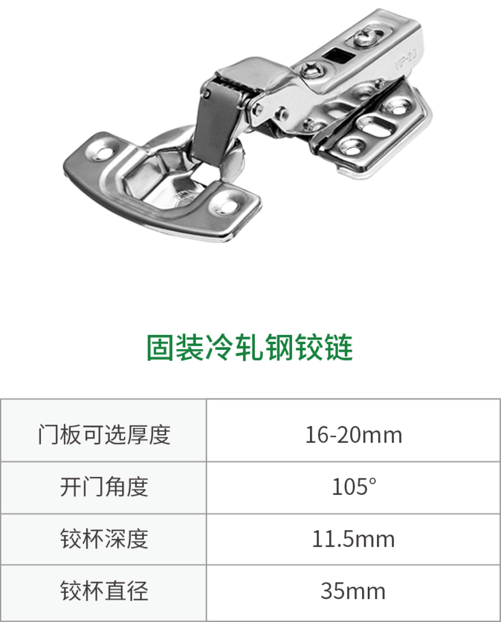 作為定制櫥柜領域內連接柜體和柜門的五金配件,分為可拆卸(自卸)和不可拆卸(固裝)兩個類別和三種規格即中彎(半蓋)、直臂(全蓋)、大彎(不蓋)。