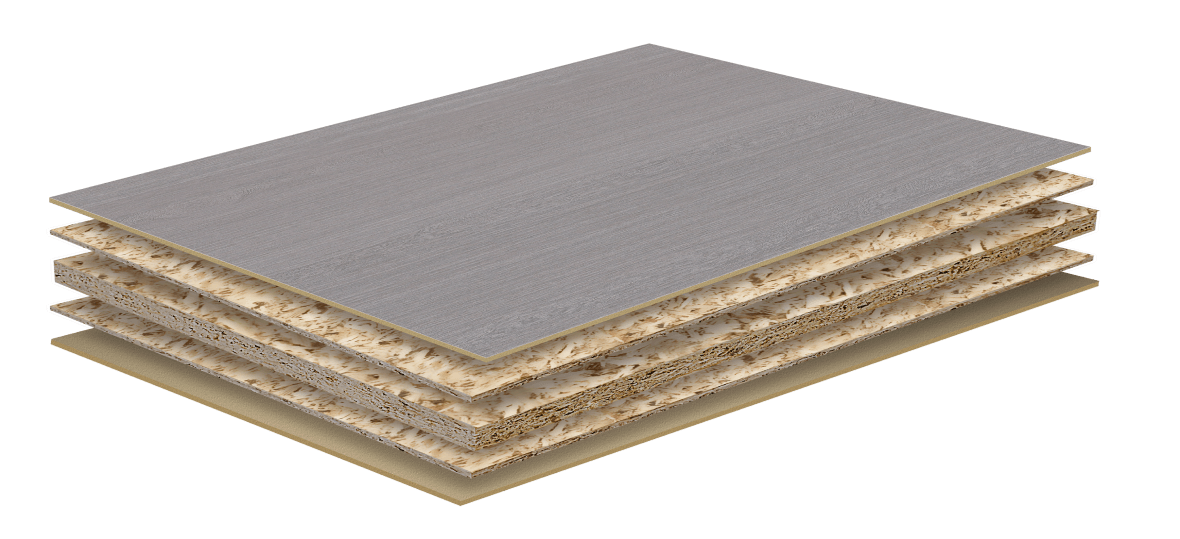 五層結構均勻密實,內芯刨片定向鋪裝,提高了板材的整體硬度,板面更加平整